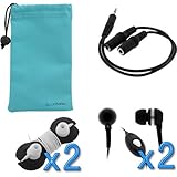- package include : 1x 3.5mm Stereo Audio Y Extension Cable 1M/2F; 2x Two circle Headset Wrap - Black ; 2x 3.5mm Soft Gel Microphone Headset - Black ; 1x Microfiber Pouch Case - Blue (150x90 mm)