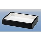Heavy-duty cardboard with glass tops. Frames are covered with black embossed paper and lined with white glazed paper. Cases measure about 2 1/4" D outside, and about 1 3/8" D inside. Bottoms are lined with a 3/8" pinning board covered with white ethafoam. List Price: Price: $ 44.50
