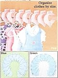 Our 14 piece infant outfit divider organizers end the clothing chaos and help you choose the correct size. With gifts, hand me downs, and outfits bought ahead in larger sizes, a child's closet can quickly become a jumble of clothes in many different sizes. These closet rod dividers help you choose the correct size. Simply place the divider on the rod and arrange clothes in the corresponding size behind it. There are 14 dividers and 16 stickers you can apply to clarify the sizes. The stickers state sizes from newborn to 24 months. Includes 14 dividers and 16 stickers. 2 each - newborn, 3 months, 6 months, 9 months, 12 months, 18 months and 24 months. The fast way to organize kids clothes by size. Color Blue. Also sold in Pink and Green on Amazon.