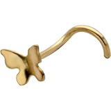 NOSE PIERCING JEWELRY. This is very pretty butterfly nose ring. This nose ring is plated with 14k Gold and features a cute butterfly. The wings are slightly raised for a 3D effect, so it looks like it's fluttering on your nose. It is a very cute and unique design. The butterfly is 4mm. Barbell Size: 20 Gauge (will fit perfectly in an 18G nose piercing)