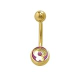Butterfly belly button ring, 14 karat gold electro plated with purple jewel. Size 14 gauge, length 10mm - 3/8" inch.