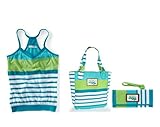Aeropostale Womens; Juniors Teal (465) Striped Banded Bottom Tank Top, Matching Aero's Teal (465) NY Striped Tote and Matching Teal (465) Striped Tri-Fold Wallet - Size (Small)