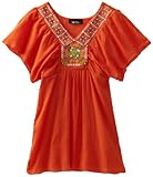 Amy Byer Girls 7-16 Gauze Tunic Bead Trim Shirt, Orange, Large