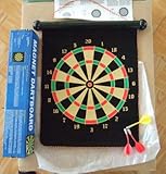 Hit the bull's-eye on two different sides! This two-sided magnetic board and its 6 magnetic darts make darting fun and safe. Includes: Archery target on reverse to double your playing options 6 magnetic darts (3 red, 3 yellow) Booklet with instructions for 10 unique games No need to worry about damaging the walls or flooring, whether you're playing on the traditional bulls-eye board or the ring target. Made of a heavy magnetic fabric and rolls easily for storage. List Price: Price: $ 14.00