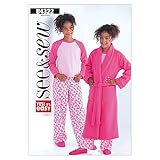 IN CHOOSING YOUR SIZE RANGE, SELECT THE APPROPRIATE LETTER ONLY: A(7-8-10); B(12-14-16) GIRL'S ROBE, TOP AND PANTS: Belted, full-length robe has shawl collar and patch pockets with purchased applique. Pullover top has contrast neckband and long sleeves. Pants have elastic waist. All garments have stitched hems. NOTIONS: Robe: Purchased One Applique. Pants: 7/8 yd. of 3/4" Elastic. FABRICS: Top and Belt: Fleece. Top: â Moderate Stretch Knits: Cotton Knits. Pants: Lightweight Broadcloth, Stable Knits and Flannels. Unsuitable for obvious diagonals. Allow extra fabric to match plaids or stripes. Use nap yardages/layouts for pile, shaded or one-way design fabrics. *with nap. **without nap. Combinations: A(7-8-10), B(12-14-16) MULTI-SIZED FOR CUSTOM FIT