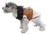 Pets need fashionable clothes just like you! Keep your pet warm and cozy in this fabulous tan pattern coat with comfortable dark fuzzy trim and hip buttons. This outfit offers hassle free on and off snapped access.