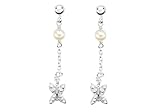 FRESHWATER PEARL & BUTTERFLY DANGLE EARRINGS SILVER. Freshwater Cultured Pearl measures 3.0 - 3.5mm. Weight: 1.72 grams. Set in Sterling Silver. Shipped in a gift box .