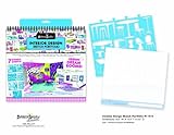 - It comes with 40 interior design- (grid formatted) sketch pages, 7 plastic stencil sheets (100+ stencils) and easy "how to" instructions!