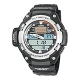 Casio Twin Sensor Men Altimeter Watch. This watch has twin sensor capability Altimeter/Barometer and Thermometer. It also is low temperature resistant. It has EL backlight with world time 5 daily alarms 1/100 second stopwatch and countdown timer. 100M Water Resistant Analog/Digital - Accuracy: +/- 30 seconds per month. Large black resin case with silver highlights and matching black resin strap List Price: Price: $ 90.00