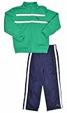 He'll look great in this adorable Puma tracksuit. Jelly Bean green jacket with white stripes, and coordinating dark blue pants with white stripes down the side. Puma logo on jacket and pants.
